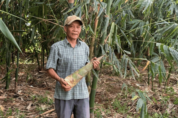 “Mỗi ngày tôi thu hoạch từ 15 – 20 búp măng, mỗi búp măng 2 – 3kg, giá bán sỉ cho thương lái tại vườn dao động từ 8.000 – 10.000đ/kg, dịp Tết măng tăng giá gấp đôi, đến 15.000 – 20.000đ/kg. Tôi có nhiều bạn hàng là chủ tàu cá. Mỗi lần ra khơi, các chủ tàu mua măng rất nhiều để dự trữ cho thuyền viên ăn. Sau mùa trăng hằng tháng là tàu cá tấp nập ra khơi, mỗi ngày tôi cắt đến 70 – 80kg măng để cung cấp cho các tàu cá tại địa phương. Bình quân mỗi tháng tôi thu nhập từ 10 – 15 triệu đồng từ bán măng điền trúc”, ông Dũng bộc bạch.