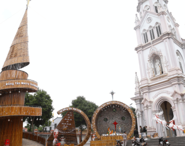 Cây thông Noel cao 22m được dựng bằng khung sắt thép và hàng ngàn cây tre, nứa là sản phẩm chào đón Giáng sinh...