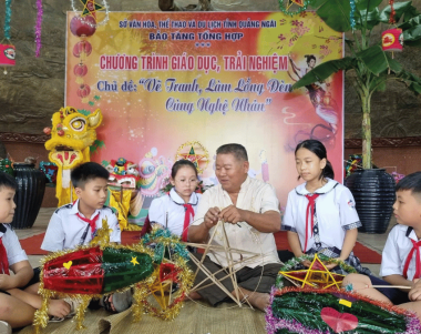 Các em nhỏ thích thú khi được xem và cùng nghệ nhân làm lồng đèn Trung thu truyền thống với nguyên liệu từ...
