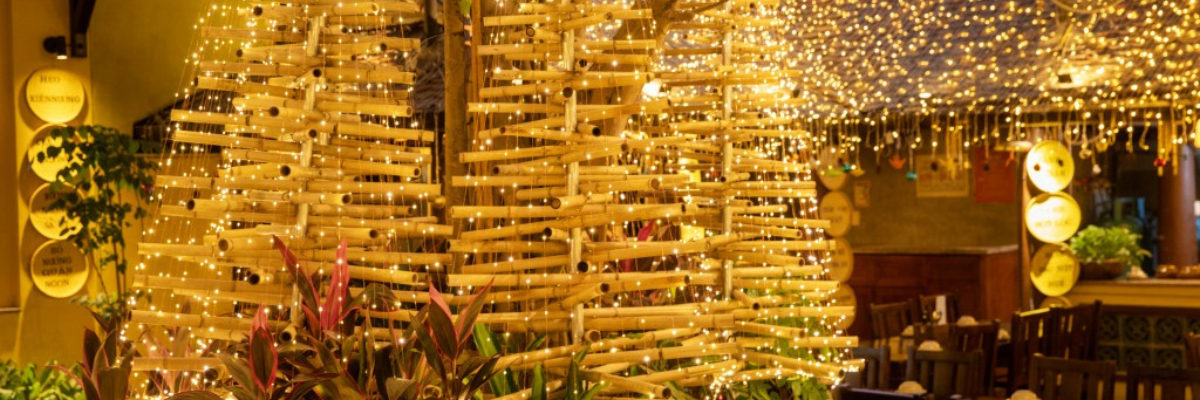 Vào dịp Giáng sinh này, không gian ấy với những thân tre, lớp chồng lớp ghép thành cây thông sáng bừng lên trong góc sân nhà thoảng hương hoa cau dịu dàng, ngọt mát, nơi bụi tre, nơi lối rẽ xào xạc gió đưa về…