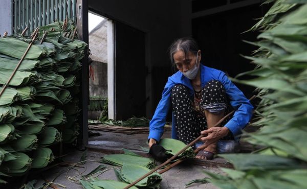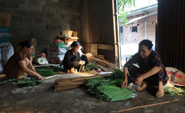 “Trước đây, người làng tôi chủ yếu kiếm sống bằng việc lên rừng đốn củi mang đi bán. Năm 1990, được một số người Đài Loan (Trung Quốc) sang Việt Nam làm việc “mách nước” nên người dân trong làng mới biết lá tre có giá trị kinh tế”, bà Dinh kể.