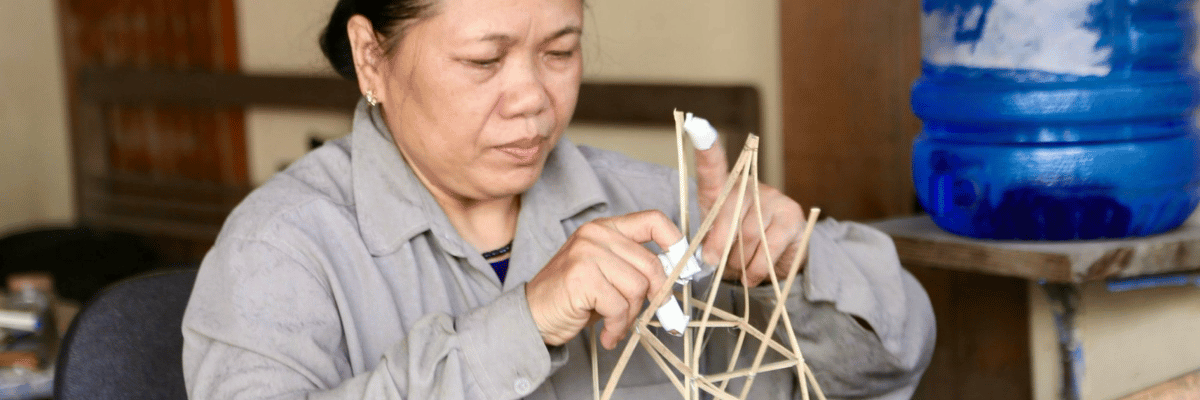 Tôi bắt đầu làm từ khi 8 tuổi, ngày nhỏ học nghề, chuyện tre nứa cứa đứt tay thường xuyên như cơm bữa. Thậm chí ngồi cả ngày cắt, dán phụ cha mẹ đến khi lưng đau cứng mới đứng dậy. Nên bây giờ, chỉ cần nhìn qua tôi cũng biết được cái nào chắc chắn cái nào không”.