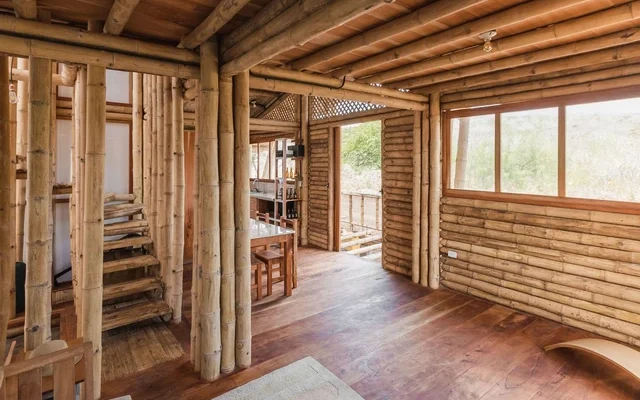 Điểm đặc biệt của ngôi nhà là hầu hết đồ đạc, tường, vách ngăn, cầu thang đều được thiết kế bằng tre và cedrela – một loại cây lấy gỗ đặc trưng của quần đảo Galapagos nhằm đem đến cảm giác mát vào mùa hè, ấm vào mùa đông. Tương tự, các chi tiết bên ngoài ban công, sân thượng và hệ thống lưới mắt cáo đều được làm từ cedrela và thân cây mía theo những cách khác nhau.
