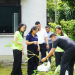 Các tình nguyện viên và đại diện đơn vị đồng hành cùng nhau trồng tre, tạo mảng xanh gắn kết cộng đồng tại Làng SOS Gò Vấp.