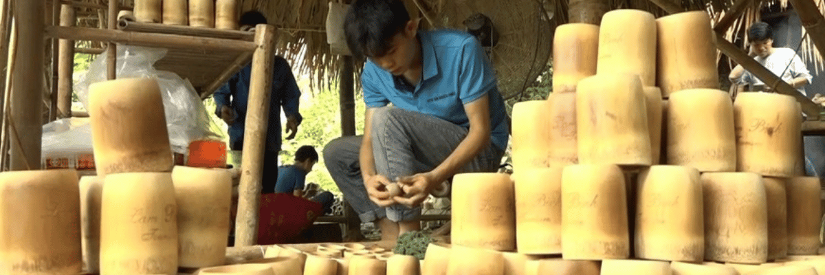 Dù có sự hỗ trợ của máy móc, nhưng theo các thành viên, một sản phẩm cũng cần ít nhất là 24 giờ để hoàn thành và trải qua gần 10 công đoạn như thu hoạch, hấp nhiệt để ép hết chất đường trong tre, sấy, cắt phôi, định hình, chà thô, chà mịn, khắc và tinh chỉnh. Khi có đầu tư về máy móc cùng với sự sáng tạo của người thợ, các sản phẩm dần có hồn cốt và khẳng định được giá trị trong cuộc sống.
