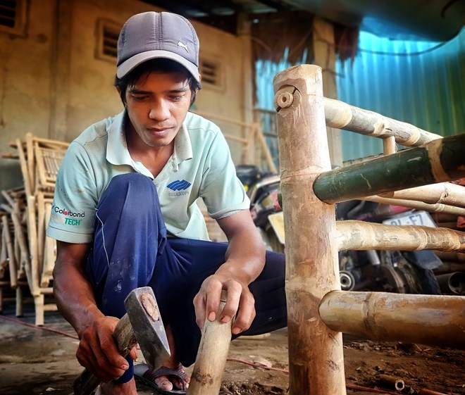“Mỗi tháng tôi cung cấp hàng ngàn cây tre, tầm vông để bà con làng nghề sản xuất các sản phẩm ghế đôn, ghế xếp, giường tre, giúp tôi có được gần 10 triệu đồng”, anh My cho biết.